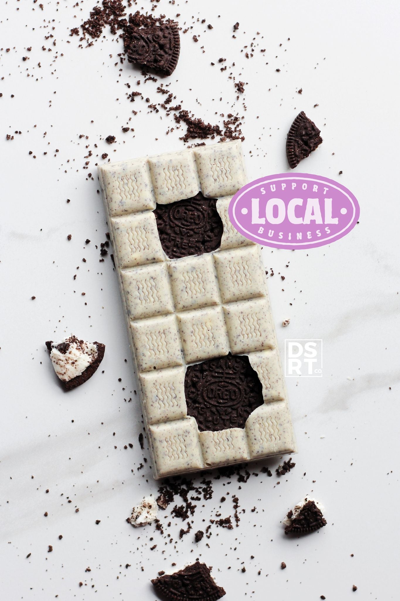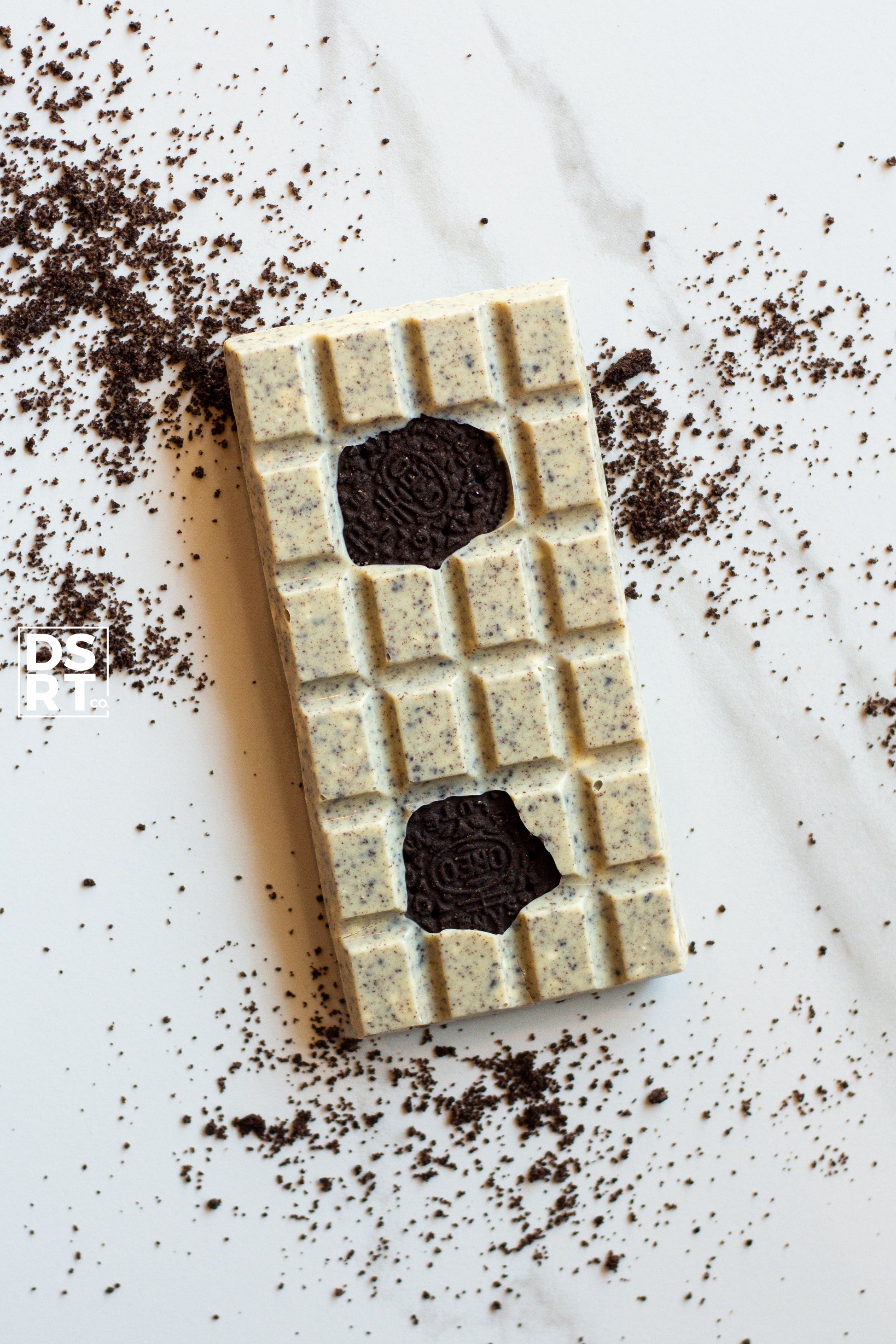 Belgian white chocolate with freeze dried ice cream and gluten free oreo pieces. One of our all-time best-selling bars!