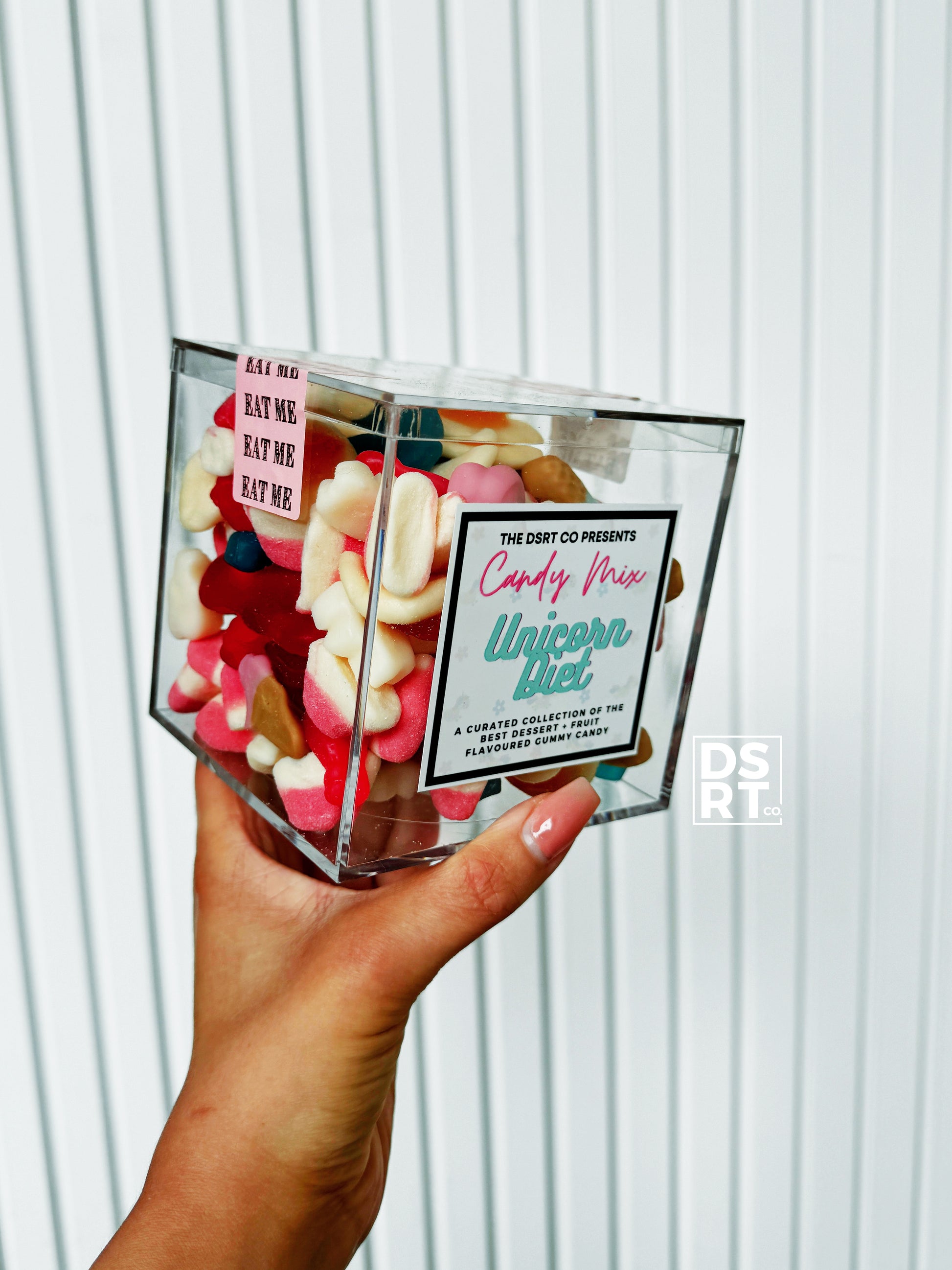 Curated gummy candy mixes in 3 different flavour options: Unicorn Diet (a super sweet desserty flavour mix), Pucker Up Please (a sour candy mix) and Halal Mode (an assortment of flavours but all certified Halal- please note some flavours do contain gelatin from halal sources and some are gelatin free)