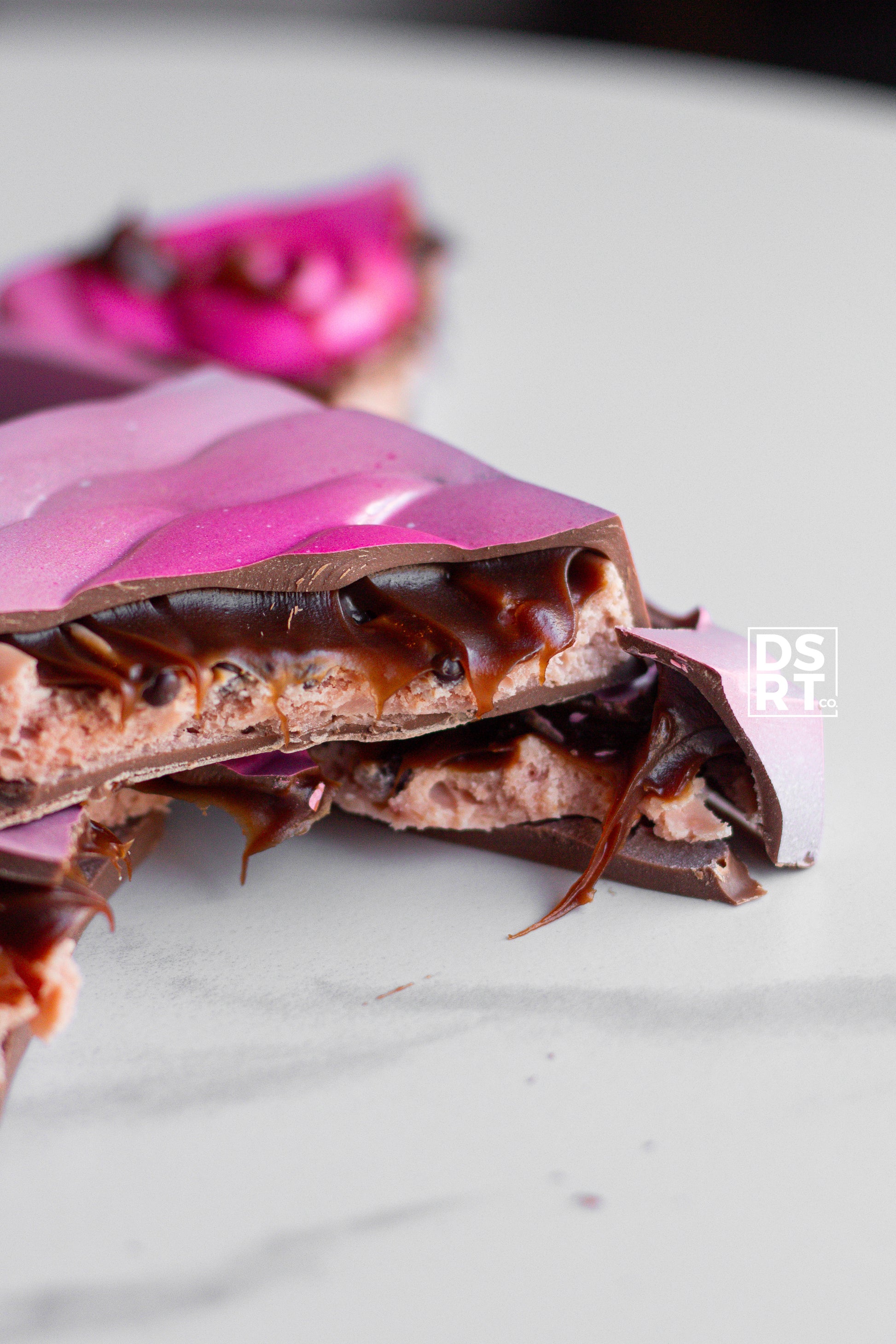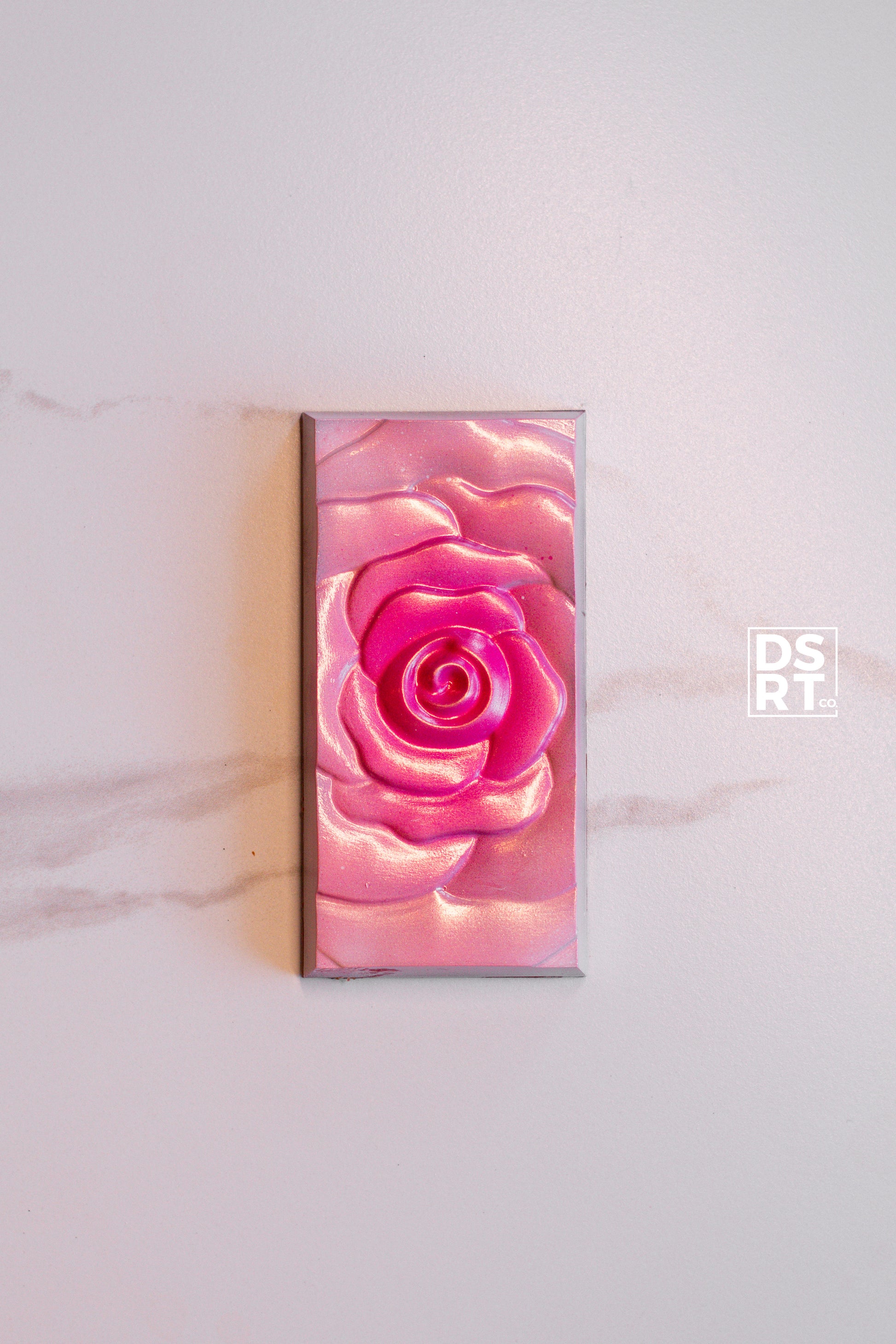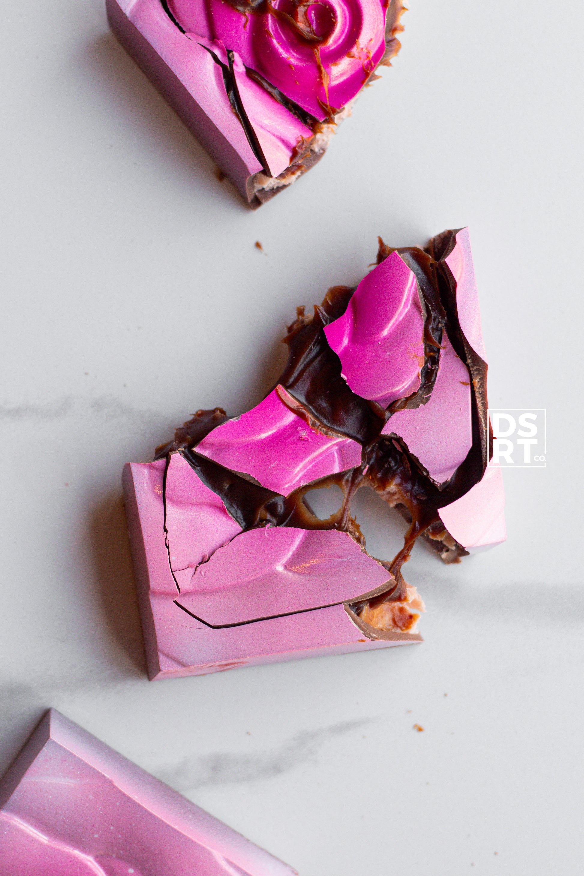 The companion bar to QUEEN OF HEARTS this is a beautiful new design for us - a very Valentine's day ready pink rose! This bar contains a strawberry ganache, dark chocolate caramel and puffed quinoa chocolate pearls - an elegant flavour combination fit for a king!