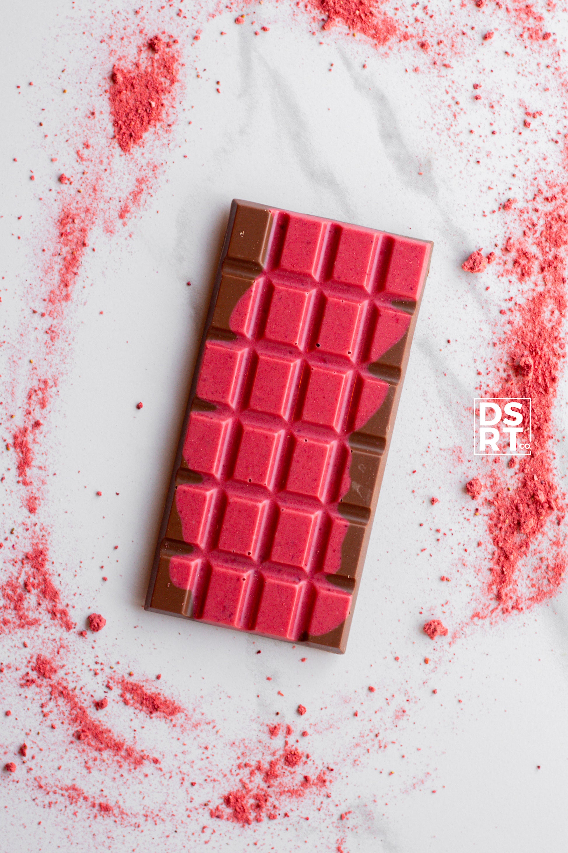 Ingredients: Belgian milk chocolate (sugar 42%, cocoa fat 24%, dry whole milk 22.5%, unsweetened chocolate 11.5%, soy lecithin, natural vanilla flavour. ), Belgian white chocolate (sugar, cocoa butter, whole milk powder, emulsifier (soy lecithin), natural vanilla flavouring.), Strawberry valrhona couverture (sugar, cocoa butter 37.9%, strawberry powder 14.2%, emulsifier: sunflower lecitihin. ), Strawberries, Dark chocolate puffed quinoa (chocolate 70% cacao (cocoa mass [cocoa liquor], cane sugar, cocoa butter, natural cocoa powder), sweet puffed quinoa ( cane sugar, puffed quinoa), cocoa butter)