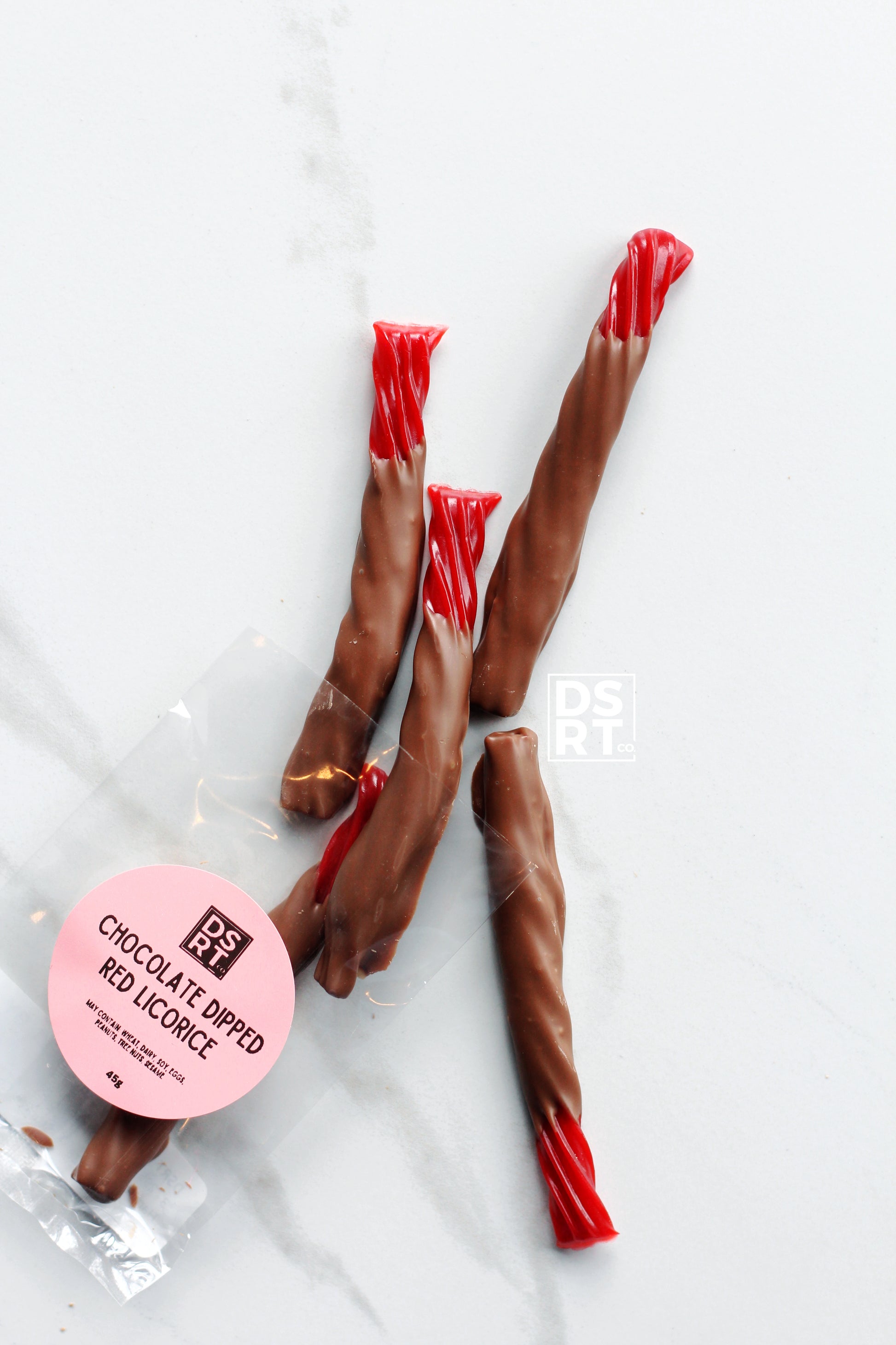5 pack of licorice sticks dipped in Belgian milk chocolate.