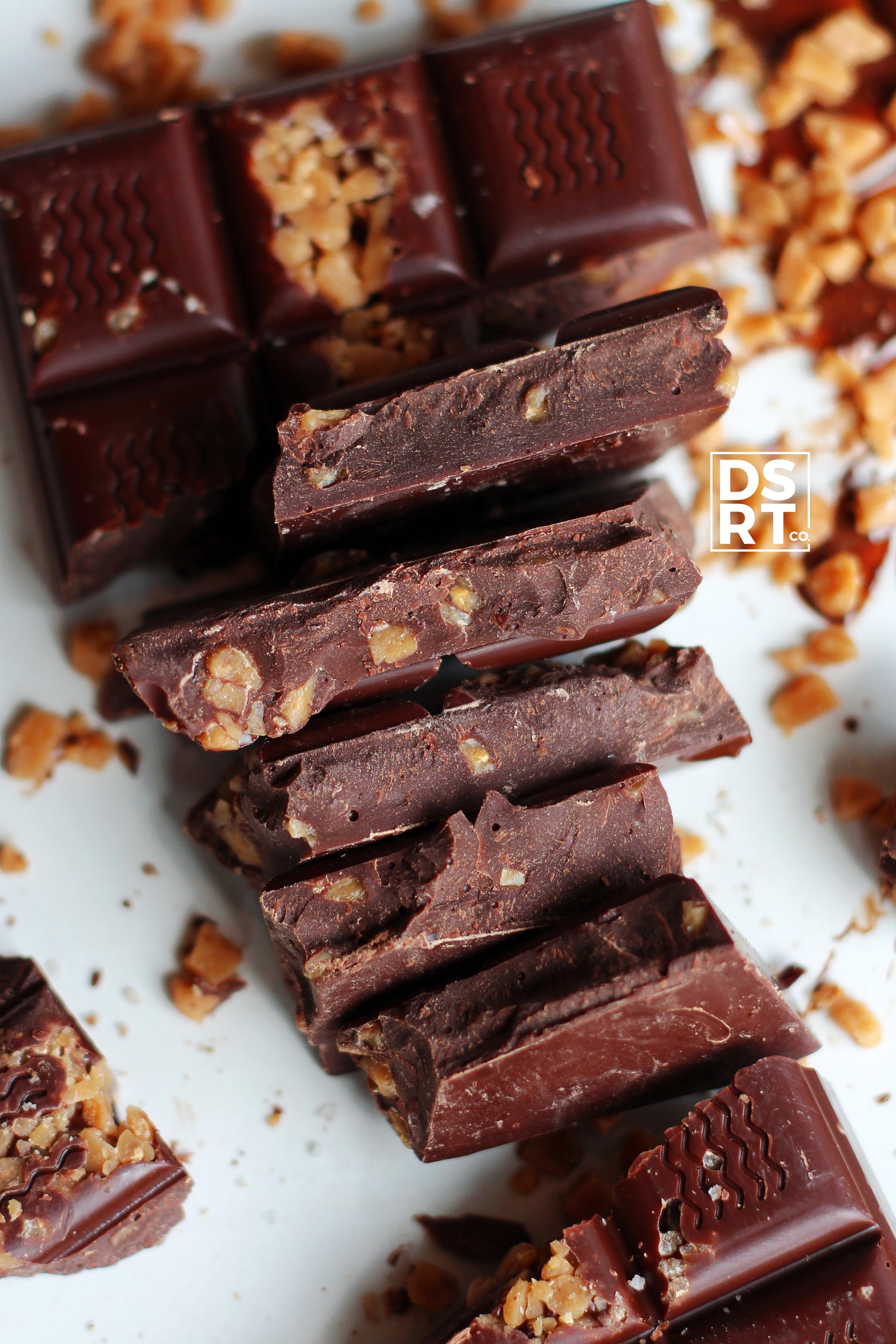 Ingredients: 70% Phillipines Bon Bulak dark chocolate (unsweetened chocolate, sugar, cocoa butter, unsweetened chocolate from ecuador, soy and/or sunflower and/or canola lecithin (emulsifier), natural vanilla flavour ), Toffee pieces (sugar (sugar, sweetened condensed milk), milk ingredients, almonds, milk chocolate [sugars (sugar, lactose), cocoa butter, unsweetened chocolate, milk ingredients, salt, lecithin (soy), natural flavour], salt, unsweetened chocolate, sunflower oil), Salt