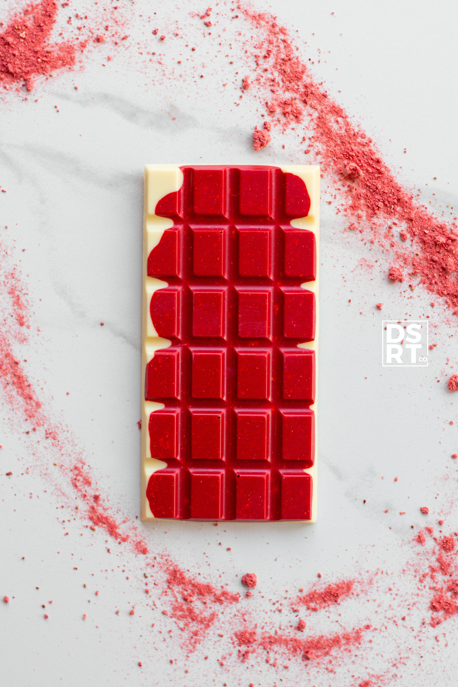 Our take? a red velvet chocolate base (belgian white and milk) with freeze dried cheesecake and graham cookie pieces.