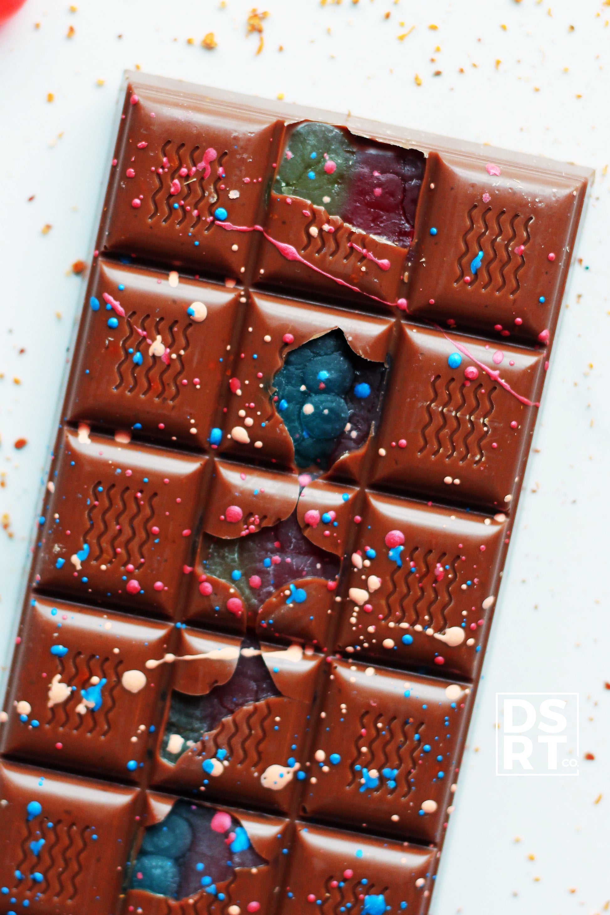 Ingredients: Vegan amatika milk chocolate (sugar, cocoa butter, cocoa beans from madagascar, ground almonds, emulsifier: sunflower lecithin, natural vanilla extract ), Jolly rancher misfits (sugar, corn syrup, modified corn starch, malic acid, natural and artificial flavors, sodium citrate, citric acid, colour ), Tajin spice (chili peppers, sea salt, dehydrated lime juice, silicone dioxine (to prevent caking) )