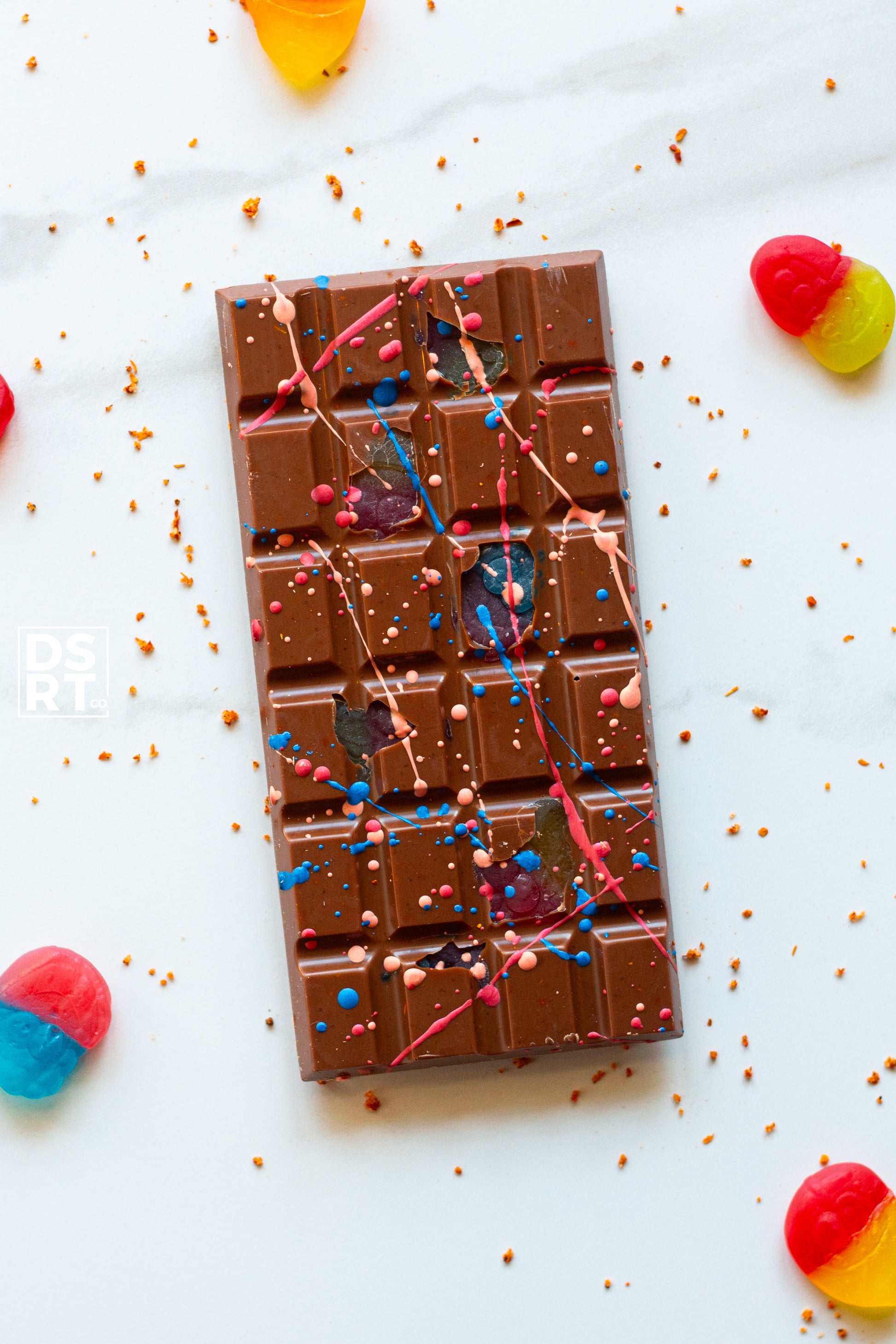 Our beloved Tajin Dream bar now available without the dairy! We are debuting the new Vegan Mylk Chocolate we are using which is a richer, creamier couverture. This new mylk chocolate is the perfect base for the tangy spiciness of Tajin and the chewy sweetness of the tropical gummy candies.
